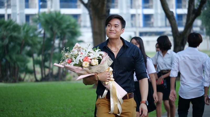 เปรี้ยว ที่มหาวิทยาลัยพร้อมดอกไม้ช่อโตมาขอโทษ หวัง เปรี้ยว ให้อภัย